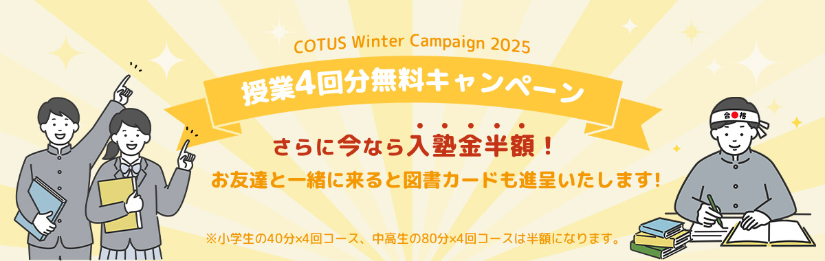 コータスの冬期講習は「日程・時間・教科」が選べます。